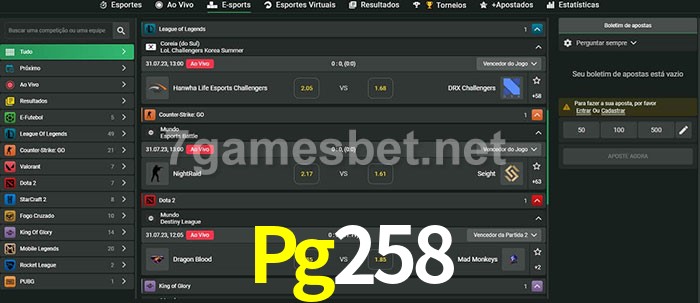 O Pg258 oferece uma grande seleção de opções de apostas em e-sports com probabilidades competitivas
